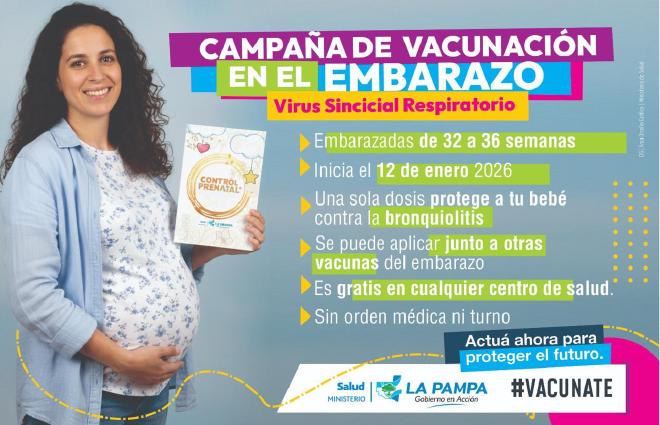 El Ministerio de Salud de La Pampa recomendó la vacunación a todas las embarazadas que se encuentren entre las semanas 32 y 36 de gestación.