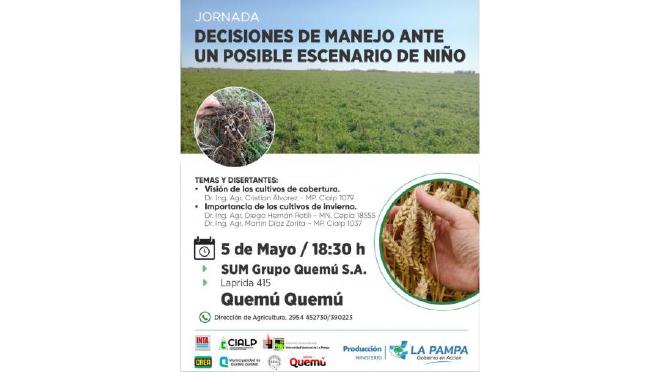 The initiative has the support of INTA, the Faculty of Agronomy of UNLPam, the College of Agronomist Engineers of La Pampa (CIALP), CREA, the Rural Society of Quemú Quemú, and the Municipality of Quemú Quemú.
