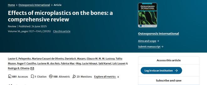 “Mejorar la calidad de vida y reducir el riesgo de complicaciones óseas, como las fracturas, es una prioridad en el área de la salud. Ya sabemos que prácticas como el ejercicio físico, una alimentación equilibrada y los tratamientos farmacológicos contribuyen significativamente a ello. Sin embargo, a pesar de que las enfermedades osteometabólicas están relativamente bien comprendidas, existe una laguna en cuanto a la influencia de los microplásticos en el desarrollo de estas enfermedades. Por eso, uno de nuestros objetivos es generar evidencias que indiquen que los microplásticos podrían ser una posible causa ambiental, controlable, para explicar, por ejemplo, el aumento proyectado de fracturas óseas”, concluyó Oliveira.