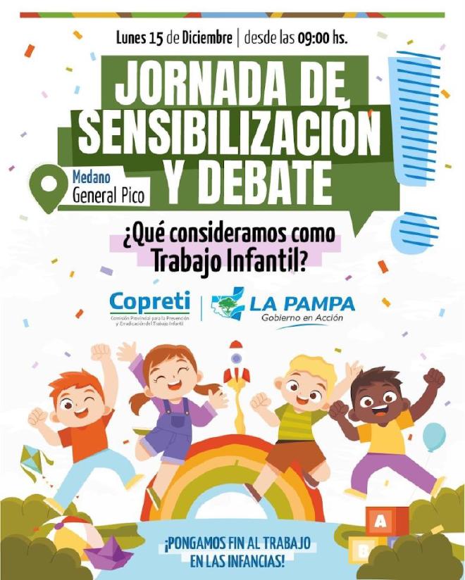 La COPRETI se reunirá en General Pico el lunes venidero. El encuentro consistirá en un debate abierto con la consigna “qué consideramos como trabajo infantil”. “La idea es seguir trabajando en esto que venimos haciendo todo el año para generar una prevención en la temática y brindar información no sólo para la gente que trabaja en el área de niñez sino también para la sociedad en general”, dijo a la Agencia Provincial de Noticias la subsecretaria de Relaciones Laborales, Ana Rodríguez.