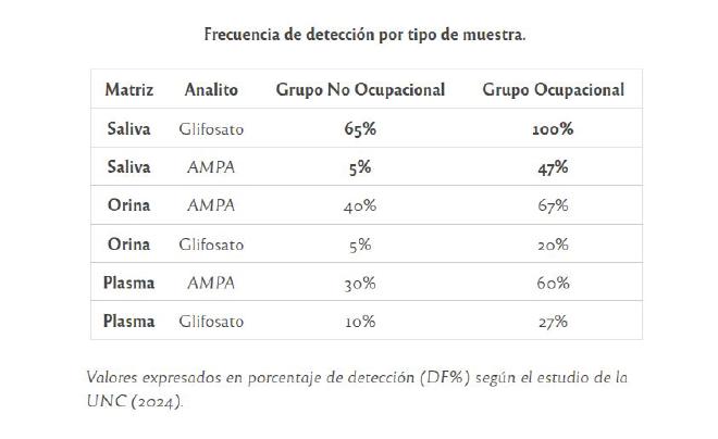 Las concentraciones promedio de glifosato encontradas en saliva fueron de 2,86 ng/ml (nanogramos por mililitro) en trabajadores, frente a 0,38 ng/ml en el grupo sin exposición directa. Para asegurar la precisión, se utilizó tecnología de alta complejidad como la cromatografía de gases acoplada a espectrometría de masas.