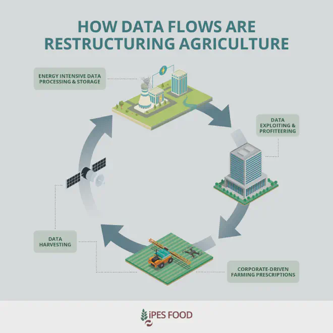 Big Tech and Big Ag firms are turning farmers’ knowledge and work into profit, while farmers lose control over their own data. Digitalization is outsourcing farmer decisions to distant algorithms, with little accountability. Control over data is thus becoming a new source of power and profit in agriculture.